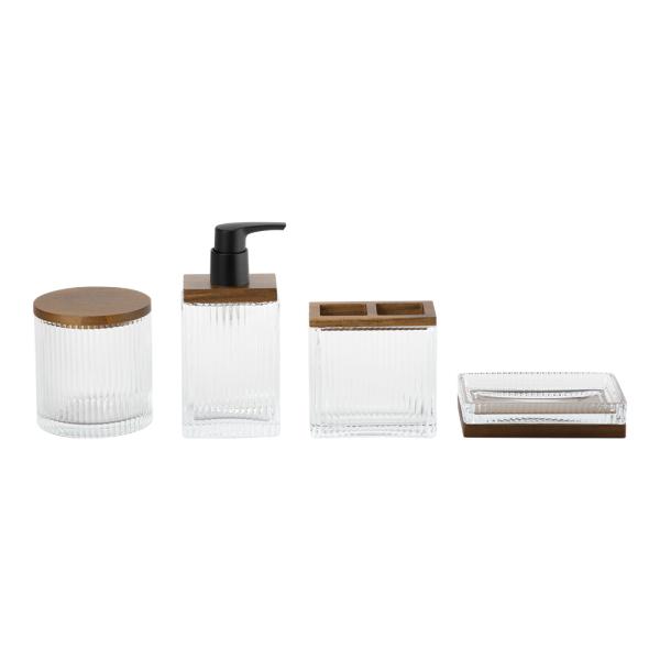 Glass Bathroom Accessories Set Wood Pump Ribbed Vertical Stripe Soap Dispenser Tumbler Images |